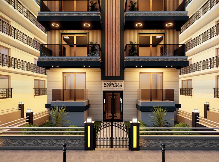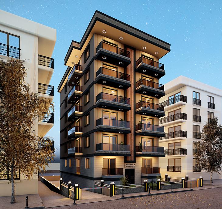 6 kat 12 daire olan 1.BAĞDAT apartmanı, yenilenerek kapalı otopark üzeri 6 kat 12 daire olarak teslim edilecektir.